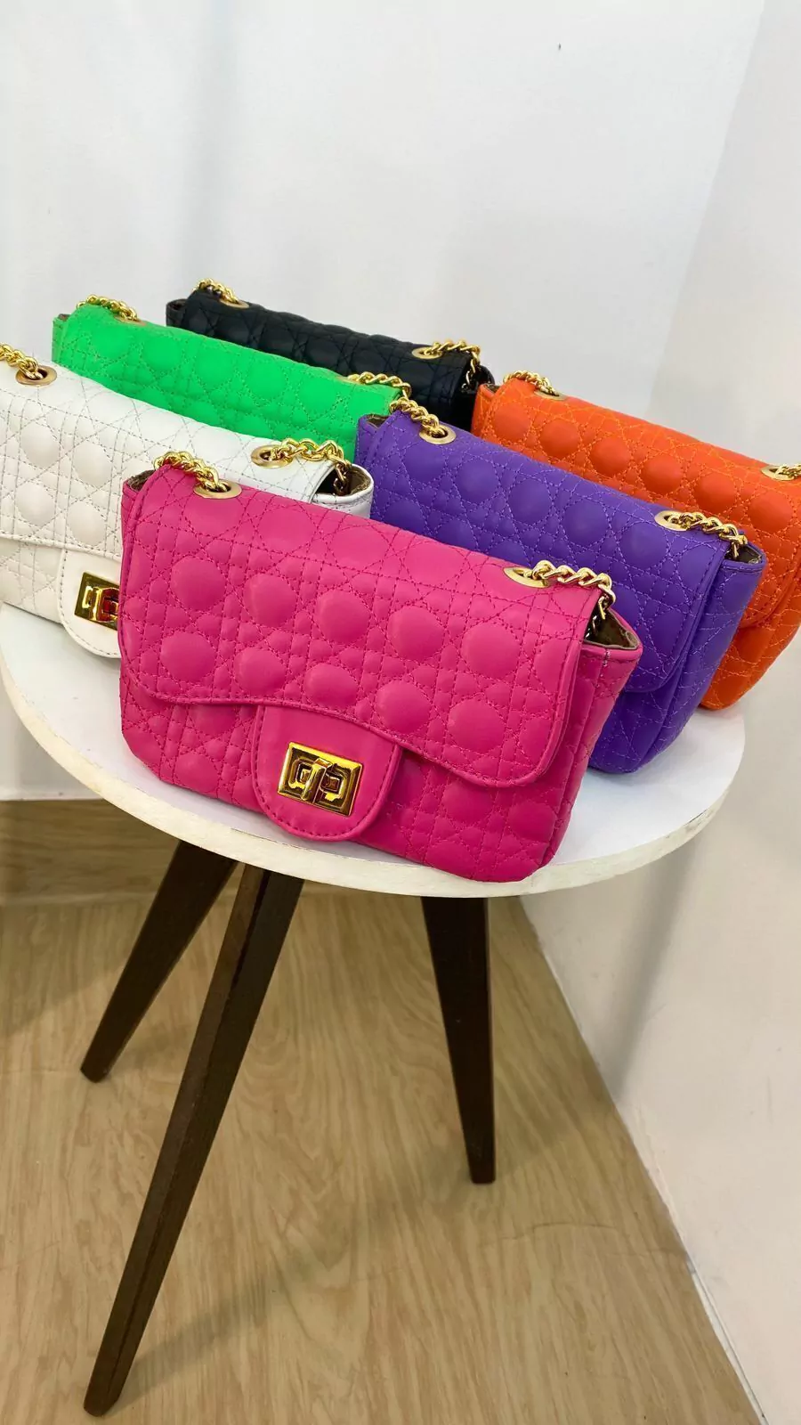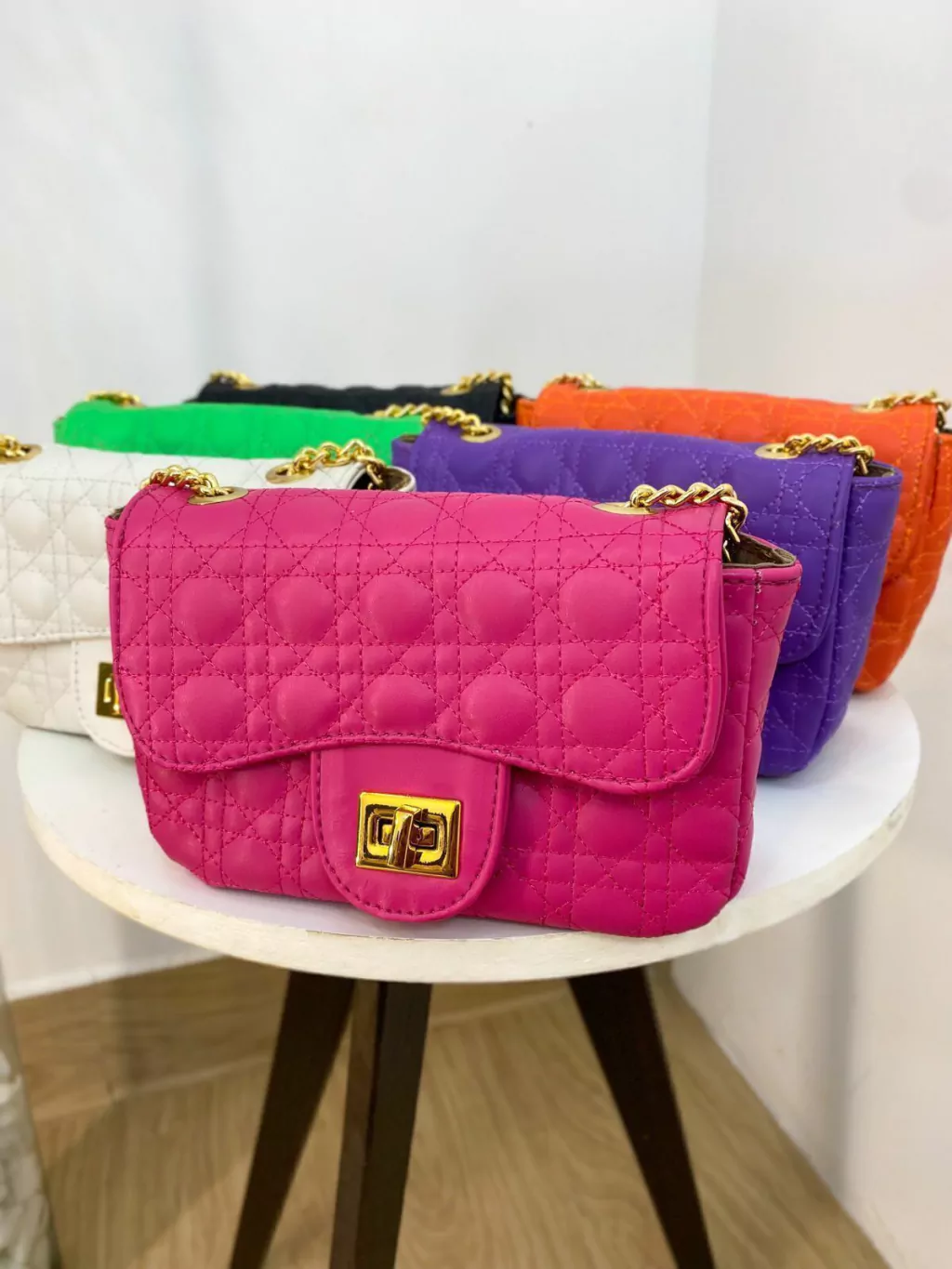 Bolsa tecido em couro ,forrada com um acabamento impecável, alça de correntes dourado, bem espaçosa.